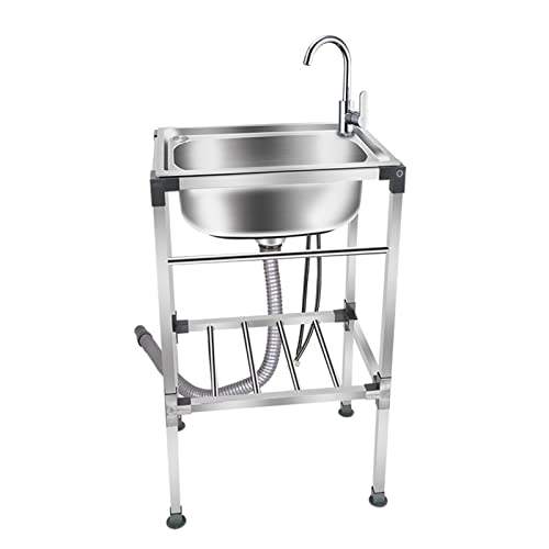Handfat,Kommersiell Diskbänk I Rostfritt Stål, Fristående Diskbänk Enkel Skål, Farmhouse Enkel Tvättho Med Kran Underhylla, För Tvättstuga Backyard Garage (enhet: Cm) (Color : Single Cold, Size : 48