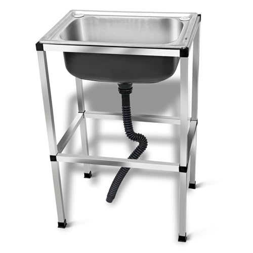 Enkel Diskho i Rostfritt Stål, Fristående Diskho med en Skål, Tvättho för Tvättstuga/Bar/Bondgård/Trädgård (Size : 53x38cm(21x15inch))