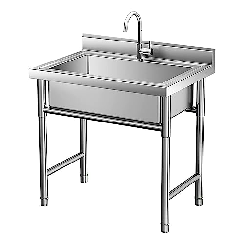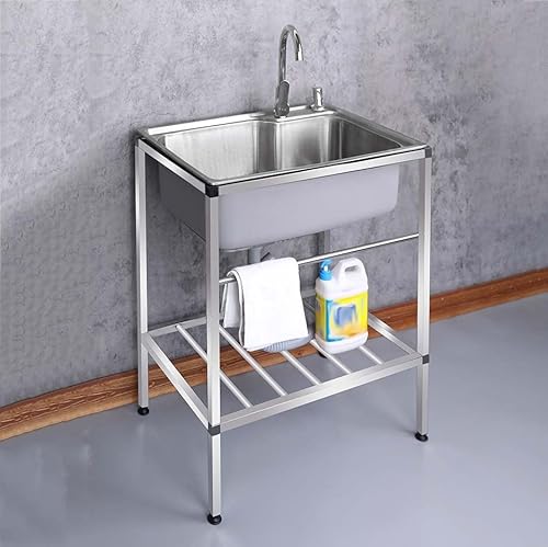 Tvättstuga Tvättho Fristående Diskbänk Rostfritt stål Enkelskåldiskho med kran för garage, restaurang, kök, tvättstuga