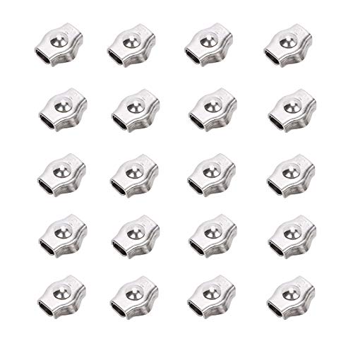 20 stycken vajerklämmor, vajer rostfritt stål kabelklämma, 304 rostfritt stål vajerklämmor för ståltråd, vajerkabel (M2, 15 mm x 12 mm, silverton)