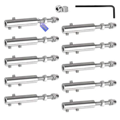 SUPAWAY 10 stycken linspännset, vajerklämma 5 mm spännterminal rostfritt stål vajer spännare med gängstift och insexnyckel vajerklämma för att fästa spänningen av vajrar