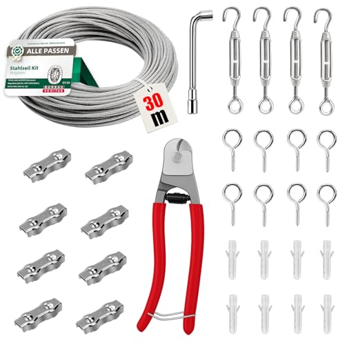 Angooni 31 st stålvajer kit, 30 m rostfritt stål vajer 4 mm,