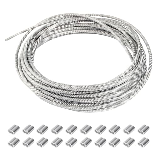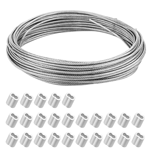 Abimars Vajer, 100 m rostfritt stål vajer kabel flygplanskabel med aluminium krympögla, 304 vinylbelagd hängande tråd, 7 x 7 trådkärna för växter klättring, blomhängning, hantverk gör-det-själv