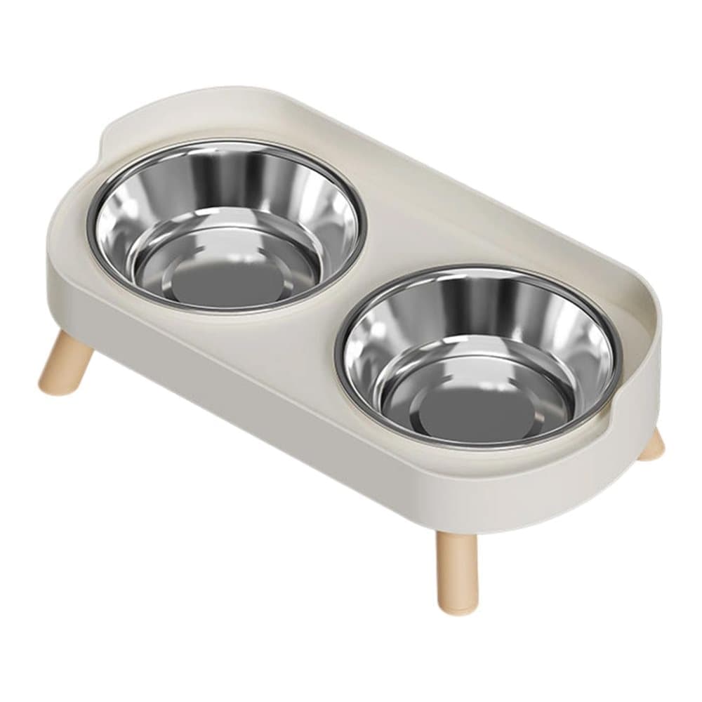 Kattmatskål på Ställ – Upphöjd Mat- och Vattenskål med 2 Rostfria Skålar, Stänksäker & Diskmaskinssäker