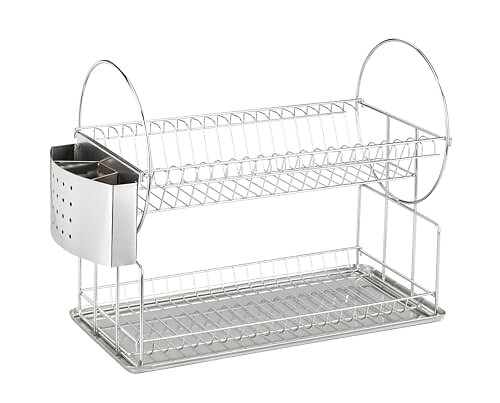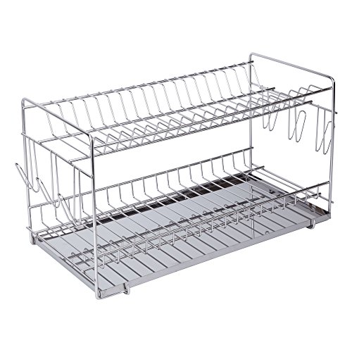 edihome, Diskställ - platsbesparande diskställ, rostfritt stål kökstorkställ med bestickhållare, diskställ för köksbänk (2 nivåer)