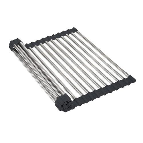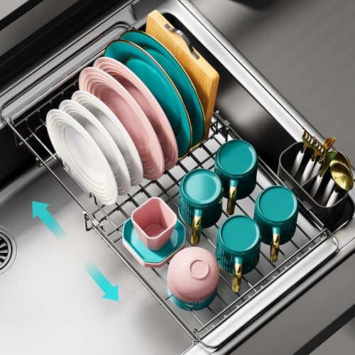 Urackify Utdragbar disktork över diskbänken, justerbart diskställ i diskbänken, rostfritt diskställ för köksbänken, disksil med redskapshållare