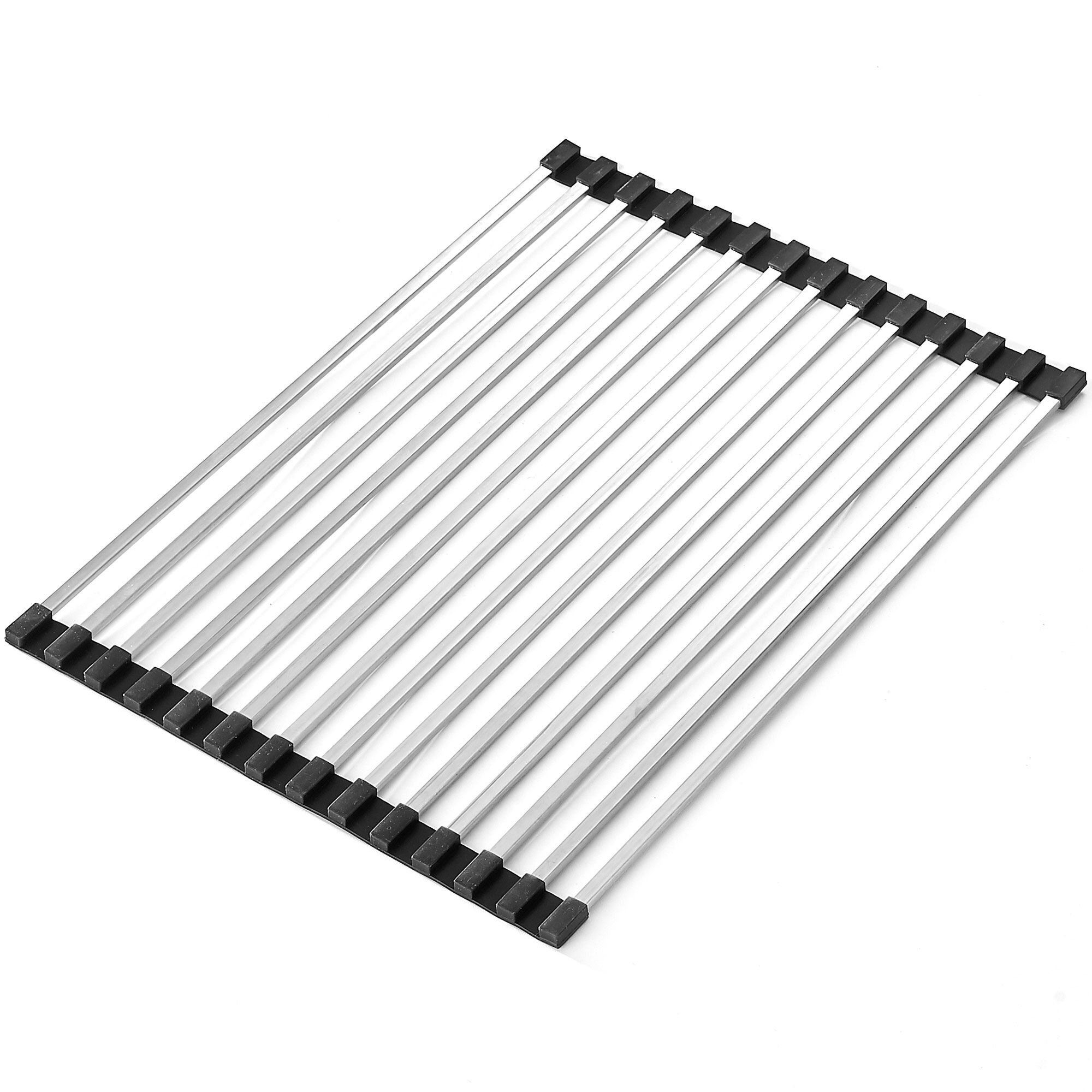 Amig - Hydro Hopfällbar Diskställ - 46,5 x 29,5 x 1 cm - Rostfritt Stål - Rostfritt Stålfärg - Över-Diskställ - För Torkning av Disk, Grönsaker eller Frukt - Köksorganisatör