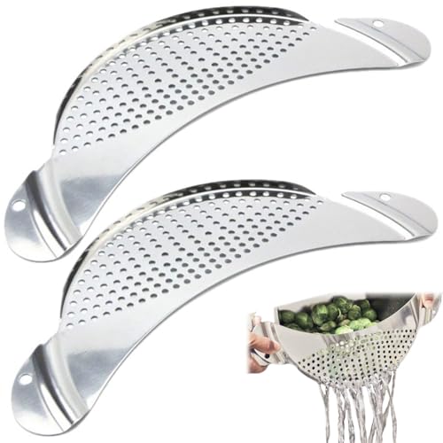 MGE - Rostfritt stål fint stickat durkslag - durkslag i rostfritt stål - kökssil - durkslag med handtag, pastafilter, ris, grönsaker - kökspasta i rostfritt stål