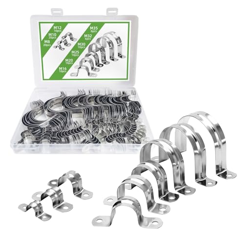 RRRST 102st U Rörklämmor Sortiment 8mm 10mm 12mm 16mm 20mm 25mm 30mm 32mm 35mm, 304 rostfritt stål, U-fäste Rörklämma för fixering av rör eller kabel