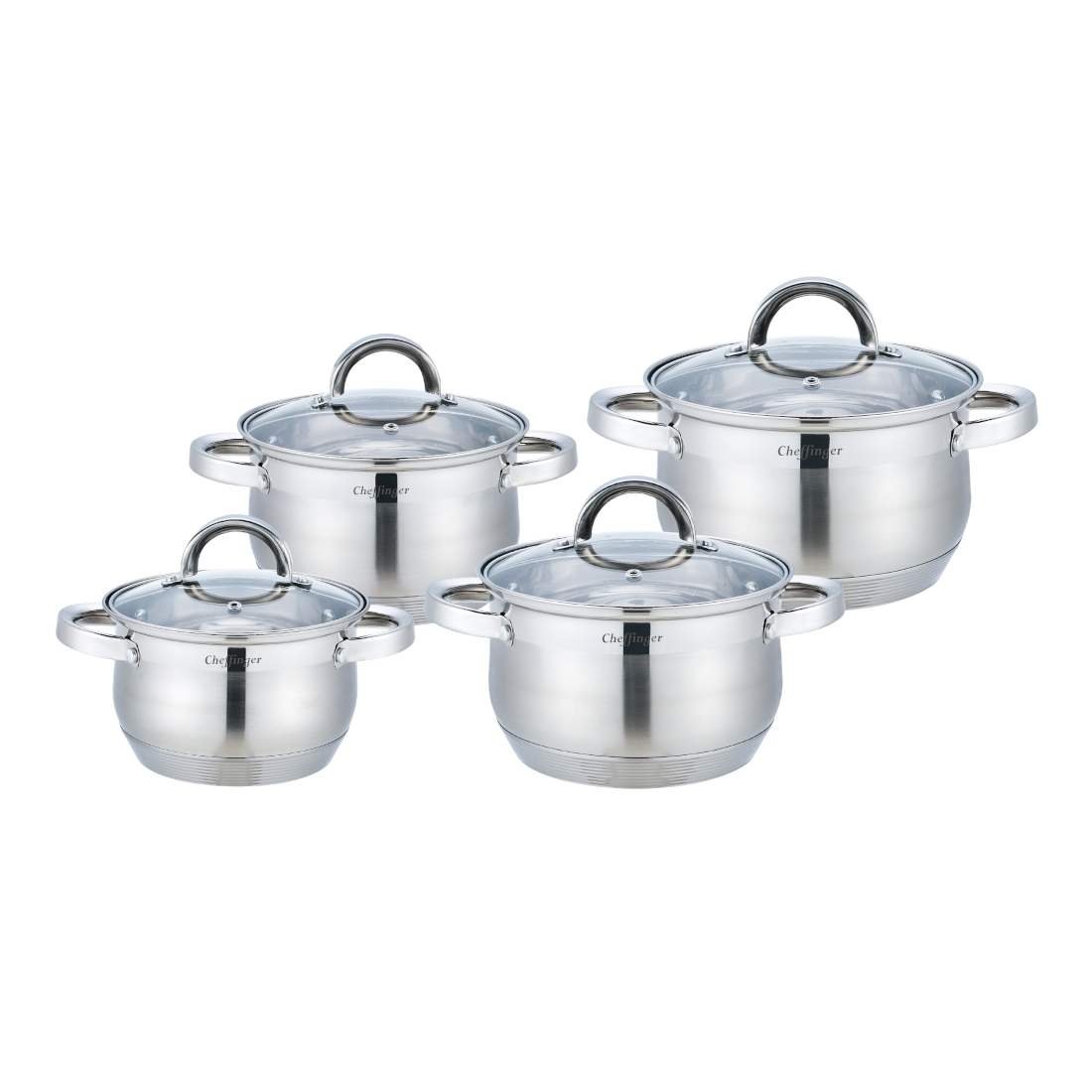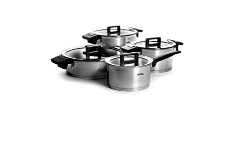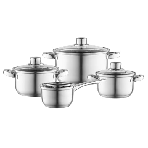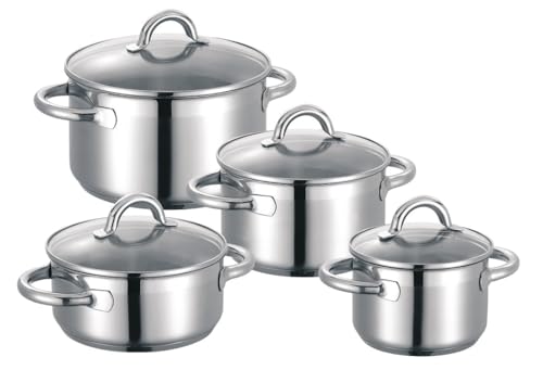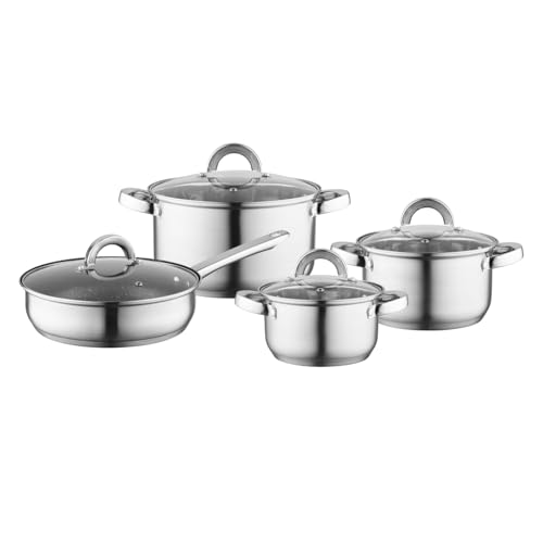 classbach® Grytset 8 delar, kastrullset rostfritt stål för alla typer av spisar (induktions-, gasspis, keramikplatta, elektrisk spis) diskmaskinssäker kastrullset camping, kastrullset C-KTS 4017