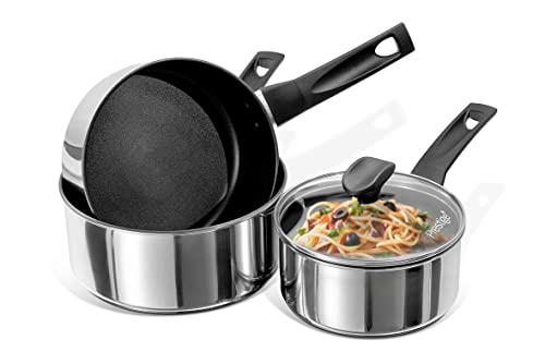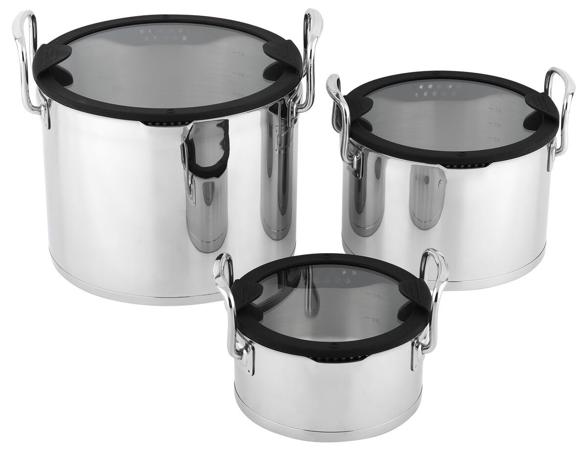 MasterPro Foodies | Grytset | 4-delat set med 16, 20 och 24 cm krukor och glaslock | Tillverkad av rostfritt stål | kastrullset | Lämplig för alla typer av spisar