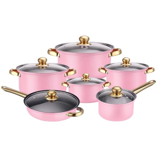 Uposao kastrullset i rostfritt stål, 6 delar, kastrullset, non-stick pannor, set med glaslock för alla typer av spisar
