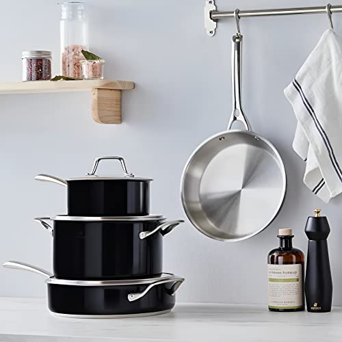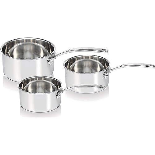 Amazon basics 3 stycken kastrullset – rostfritt stål, non-stick, lämplig för induktion, med lock – 16/20/24 cm