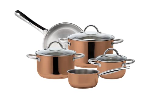 ECHTWERK induktion kastrullset av högkvalitativt rostfritt stål, 8-delars köksredskap, kastruller glaslock, 3 x kastruller, kastrull och stekpanna, lämplig för alla typer av spisar, kopparutgåva,