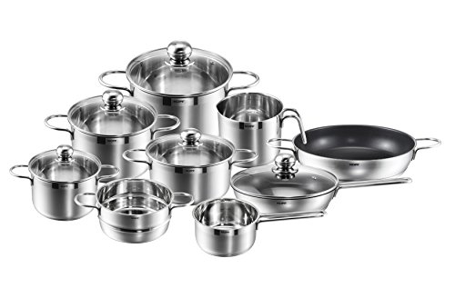 GSW 706155 kastrullset Apart 9 delar, rostfritt stål 18/8, glas, plast, silver