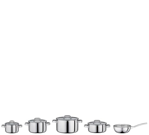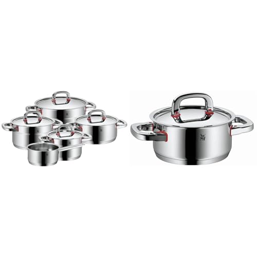 WMF Belmonte kastrullset induktion 5 delar, kastrullset med glaslock, Cromargan polerat rostfritt stål, induktionskrukor set obelagd