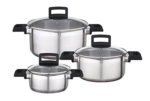 GSW 924207 Easy FIT kastrullset 3 delar, rostfritt stål, silver, 24 cm, 6-enheter, 38 x 25,5 x 13,5 cm