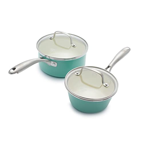 GreenLife Artizan hälsosam keramisk non-stick 14 cm/1 l och 18 cm/2 l kastrullset med lock, rostfritt stålhandtag, induktion, PFAS-fri, ugnssäker, turkos