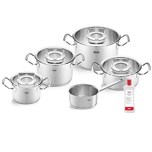 Fissler Original Profi Collection/rostfritt stål kastrullset, 5 delar, inkl. metalllock gratis skötsel av rostfritt stål – induktion [exklusivt för Amazon], silver