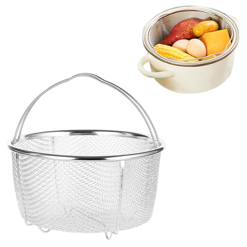 Nät ångkorg 18 cm rostfritt stål nät ångkanna med bekväma handtag, dräneringskorg för kök stekning matlagning