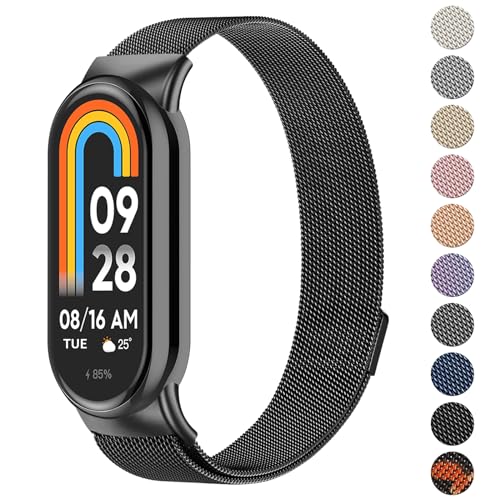 Oumida för Xiaomi Mi Smart Band 8 armband män kvinnor, metallarmband rostfritt stål nät klockarmband magnetiskt justerbart sport ersättningsarmband för Xiaomi Mi Band 8 ersättningsband