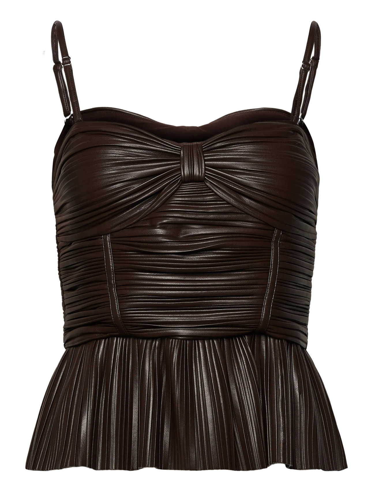 ROTATE Birger Christensen Pleated Sleeveless Top - Brown - 38