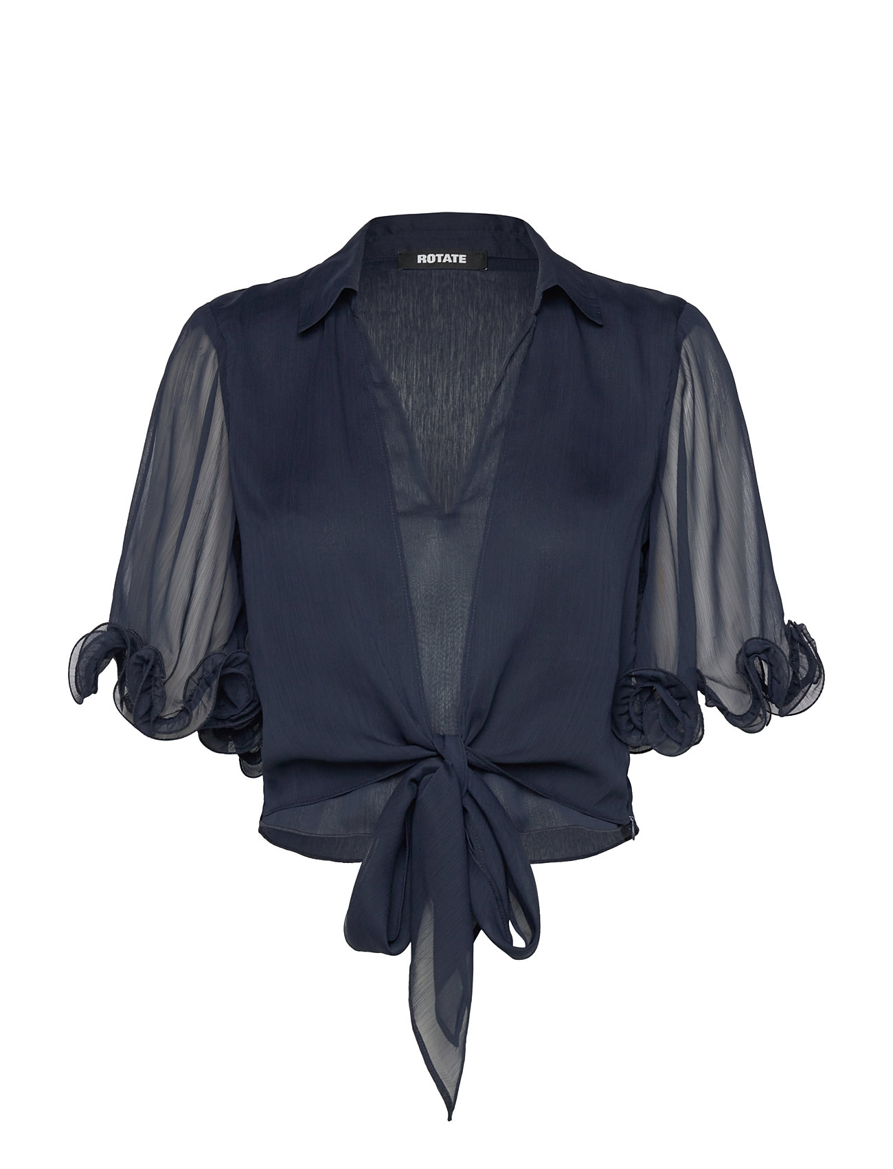ROTATE Birger Christensen Chiffon Tied Top Marinblå