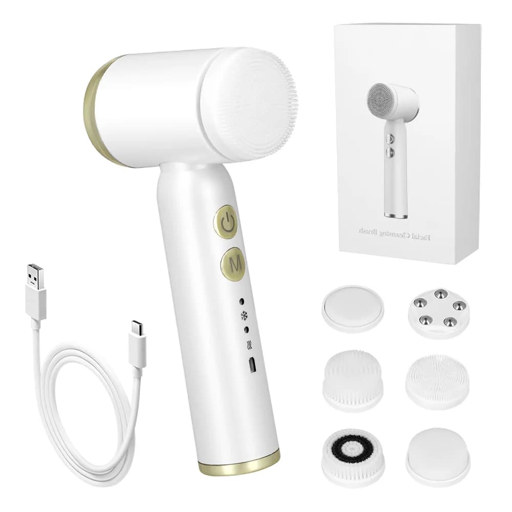 Ansiktsrengöringsborste - Elektrisk roterande borste - 3 borsthuvuden - 3 hastigheter - LCD-display - Vattentät - Uppladdningsbar - Vit