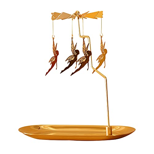 Roterande ljushållare med bricka, guld ljussnurrande metallhållare till jul, alla hjärtans dag, festbordsdekor, present (guldälvor)