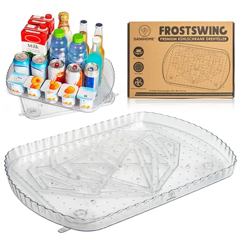 DANIHOME® Frostswing – kylskåpsförvaring för maximal översikt, multifunktionell roterande bricka, praktisk köksorganisatör, roterande tallriksorganisatör, perfekt köksförvaring och organisering