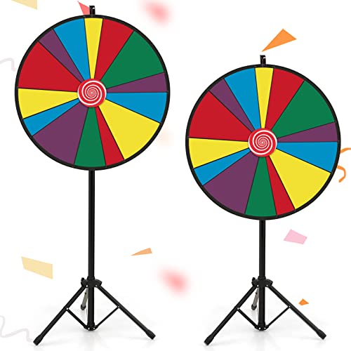 GOPLUS 80 cm lyckohjul med höjdjusterbar metallbotten, inklusive suddgummi och markeringspenna, roterande hjul prishjul för lotteri spel och festspel, för barn och vuxna, färgglad