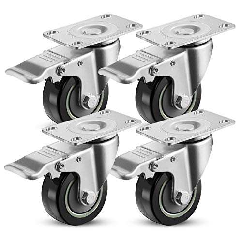 Meditool 4 Svängbara hjul,75mm 400KG,Möbler Hjul,Roterande hjul för möbler med broms, med monteringsplatta, (Svart)