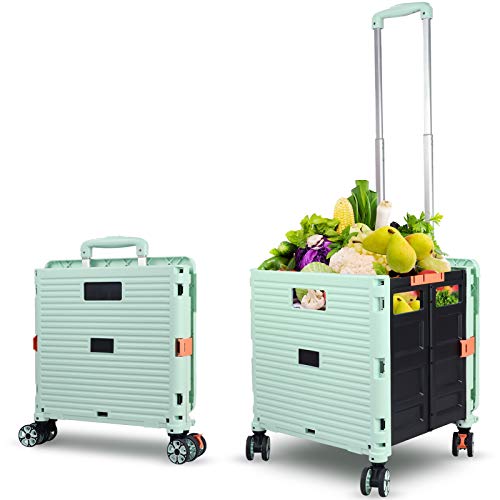 Vikbar shoppingvagn, 54 l/45 kg hög kapacitet multifunktionell bärbar användningsvagn med teleskopstång och 4 infällbara roterande hjul för shopping, picknick, förvaringslåda grön