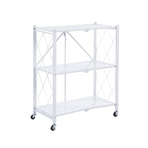 Catter House Kim 84 vikbar metallhylla - 71,5x36x84 cm Vit med 360 graders roterande hjul och 3 hyllor Stöder upp till 120 kg