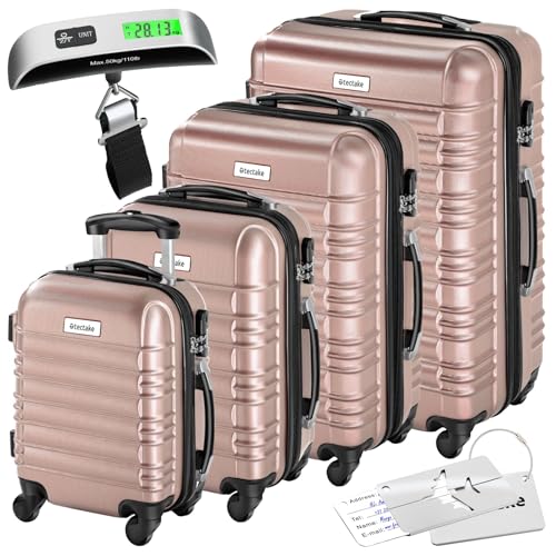 tectake® Resväska Set: 4 Hårda Resväskor Med Hjul, 360° Roterande Hjul, Kombinationslås, Förstärkta Hörn, Bagagevåg, Bagagetaggar, Handbagage Väska - Roséguld