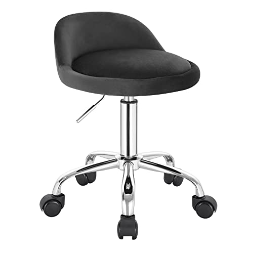 WOLTU Kontorspall med hjul, roterande pall höjdjusterbar, rullpall med lågt ryggstöd, arbetspall mörkgrå, sitthöjd 43–54,5 cm sammet BS127dgr