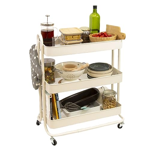 Craftelier - Stor organisationsvagn i metall med 3 brickor | 4 360° roterande hjul med bromsar i 2 | Total storlek: 71,2 x 61 x 29 cm - Brickans djup: 6,6 cm, vit färg