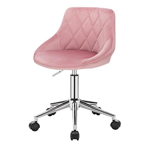 EUGAD Roterande skrivbordsstol med hjul sammet kontorspall, ergonomisk, rosa