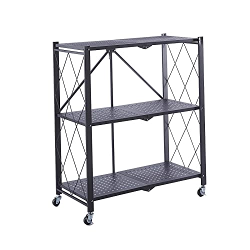 Catter House Kim 84 vikbar metallhylla - 71,5x36x84 cm Färg Svart med 360 graders roterande hjul och 3 hyllor Stöder upp till 120 kg