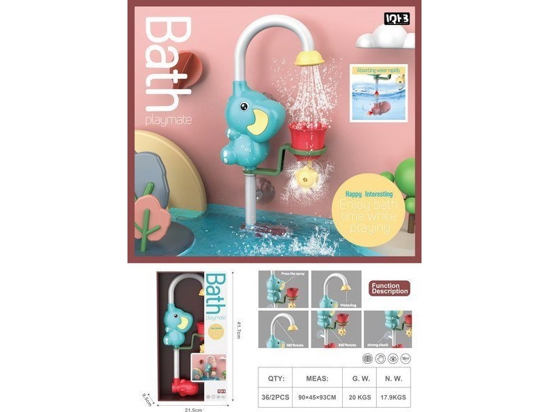Triton Shower Elephant Baby Badleksak 18M+ Pipmugg Med Hål + Roterande Hjul + Roterande Kran