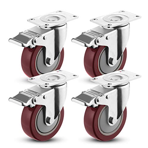 Meditool 4 st 100mm svängbara hjul Roterande hjul för möbler med broms (Maximal lastkapacitet 400 kg)