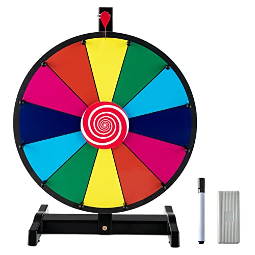 COSTWAY TT10005/TT10007DE 12 tum/15 tum lyckohjul att snurra, inklusive suddgummi och markeringspenna, roterande hjul Lucky Wheel Spinning Wheel för lotteriespel och ordspel (15 tum), flerfärgad