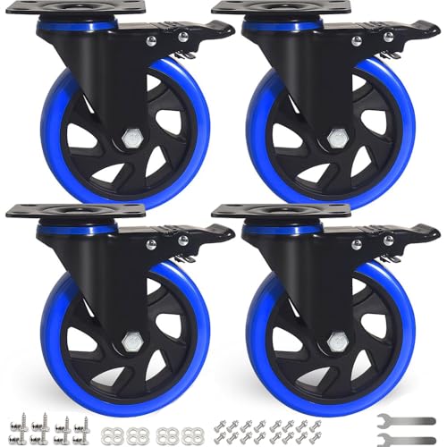 IQWTU 125 mm tunga möbelhjul, 800 kg lastbroms vagnhjul, set med 4 360° roterande möbelhjul, tunga hjul PU-hjul tysta och hållbara