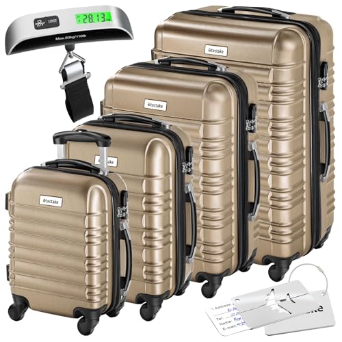tectake® Resväska Set: 4 Hårda Resväskor Med Hjul, 360° Roterande Hjul, Kombinationslås, Förstärkta Hörn, Bagagevåg, Bagagetaggar, Handbagage Väska - Champagne