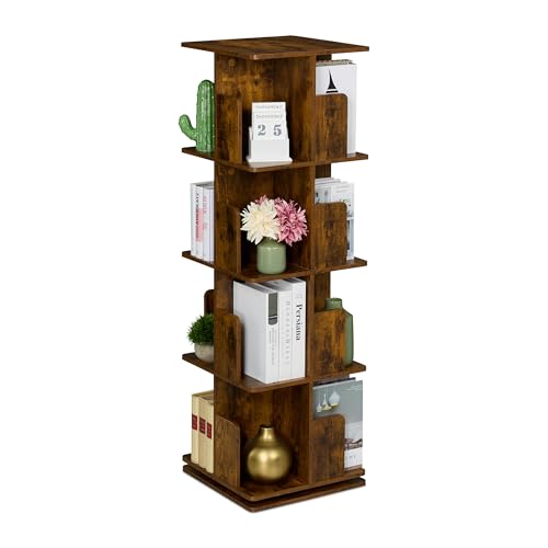 Nivadeui roterande bokhylla böcker hylla svart, golvstående bokskåp trä, bokhylla 360 fritt roterbar, fristående stående stående hylla för sovrum vardagsrum (5 nivåer)