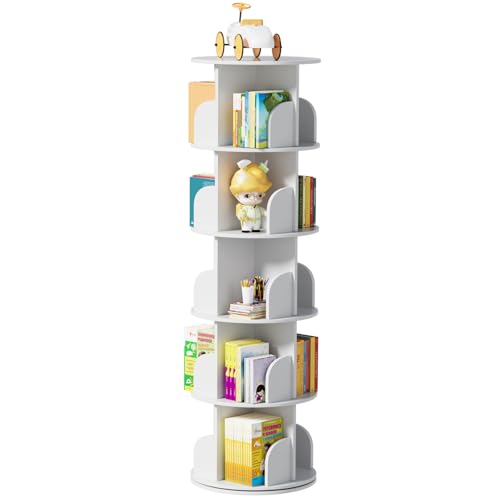 ybaymy roterande bokhylla 5 nivåer stående hylla kontorshylla dekorativ hylla 360° fri vridbar bokhylla förvaringshylla för barn och vuxna, vit