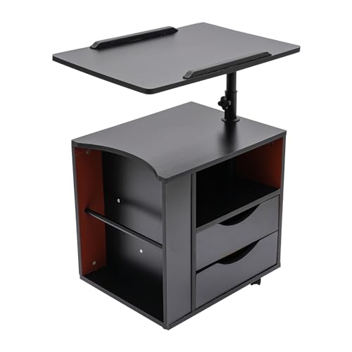 DSYOGX Roterande sängbord, flytande lyfttopp i trä, sidobord, utdragbart skrivbord, sängbord med lådor, hjul och öppen hylla för hem, kontor och skola (svart, BGQH5C