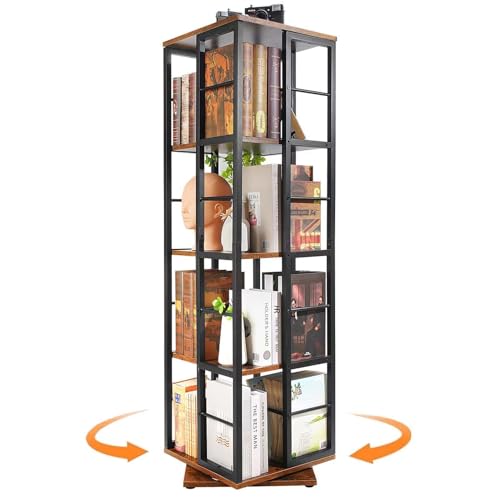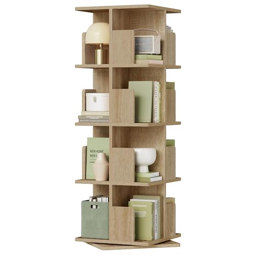 HINOPY roterande bokhylla, 4 nivåer trä bokhylla hylla förvaring multifunktionell hylla stående hylla kontorshylla 360° roterbar för kontor, sovrum, vardagsrum