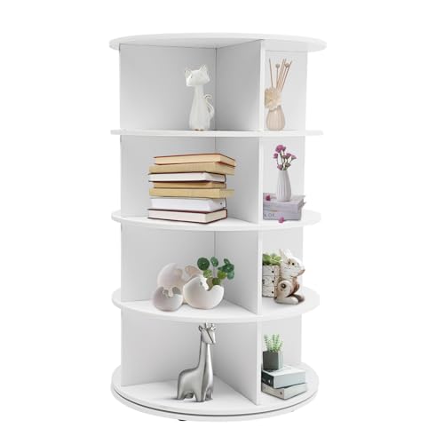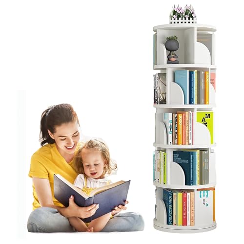 uyous 5-stegs roterande bokhylla 360° vridbar högdensitet, bokhylla, förvaringsdisplay, hylla, golv, stående hyllor för hem, vardagsrum, arbetsrum, kontor, vit (63 tum x 18 tum)