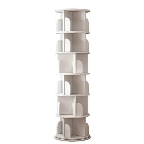 Btsunotr Roterbar bokhylla 360° roterande hylla med 3/4/5/6 hyllor golvhylla bokhylla stapelbar hylla arrangör skyltfönster för sovrum vardagsrum(vit, 40 x 190 cm)